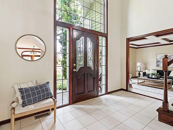 Discover your dream home nestled on a tranquil cul-de-sac, boasting a rare 6-car garage. There is a rod iron fence with gate to access lower 3 car spancrete garage. This impressive two-story residence combines elegance and functionality, featuring an updated kitchen with granite countertops, cherry cabinets, Cambria countertops and butler pantry. Enjoy scenic views from the Trex deck overlooking a private fenced backyard and pond. The upper level offers 3 bedrooms with new carpet, including a spacious owners' suite with a walk-in closet and a luxurious open bath with a fireplace. The basement is perfect for entertainment, with a large bedroom, theater room, and bonus family room, all leading to a lower level 3-car garage. With its high-end upgrades and captivating charm, this home is truly exceptional. A brand new roof installed in 2021 provides added peace of mind. There is a working well for irrigation! Don't miss the chance to own this extraordinary residence in a coveted location.