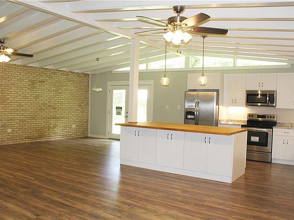 Straight out of an HGTV make over, this mid century modern renovation is Absolutely Stunning! Bring your toothbrush and move into this centrally located Midwest Mobile home that is within minutes of shopping, entertainment, restaurants, Providence Hospital, USA, the airport and the Coast Guard Base. Be prepared to be impressed with the shiplap on the front porch where morning coffee can be enjoyed in a favorite rocking chair. Then step into the wide open floor plan that will warm your heart and bring a smile to the faces of those that come to visit. Eyes will be drawn to the dramatic raised beamed ceiling, the impressive wood burning fireplace and brick feature wall as well as the gorgeous breakfast bar and center island with butcher block top where a quick snack or a hurried breakfast can be enjoyed. All of the amazing white cabinets with soft close hinges, beautiful granite counter tops,soft close drawers, corner lazy susan, under mount lighting and the high end stainless appliances are too much to take in a first glance and will bring joy to the chef of the family. The master bedroom is off the main room and has new carpeting that will feel comfortable on cool winter mornings. There is lots of light and French doors leading to the back yard. The ensuite master bath has dual designer sinks, a beautiful granite topped vanity and a corner shower with a stunning tile inlay. Not only is this an open floor plan home, it is also a split bedroom plan featuring a second master suite where raised beams and lots of light abound. The ensuite bath has a designer sink, pretty white vanity and a gorgeous tile inlay in the tub surround. There is a guest bedroom with beamed ceiling and new carpet and a guest bath in this wing of the three bedroom, three bath home. On just over a half acre of land and extends beyond the back fence line, this home has everything new: plumbing, electric, windows, flooring, HVAC, fixtures, metal roof and so much more. Come visit. You won't want to leave.