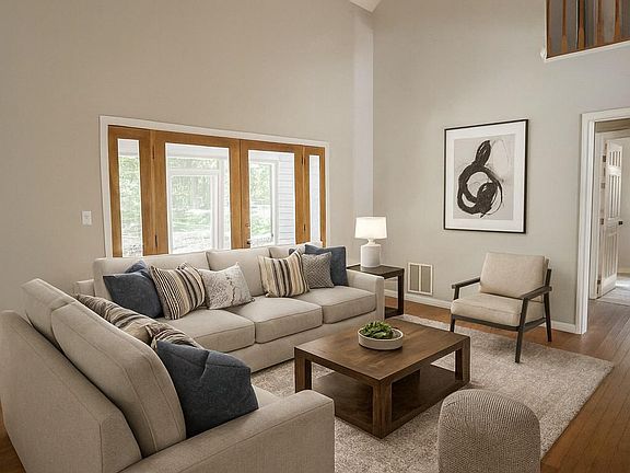 20K PRICE REDUCTION! Welcome to this beautiful and cozy 3 bedroom, 2.5 bath Custom Built Home nestled on 1 acre in a peaceful setting with a private wooded backdrop. This home offers a perfect blend of classic design and modern comforts, ideal for those seeking tranquility without sacrificing convenience. This spacious three level single family home encompasses approximately 3,103 square feet of living space and has been recently updated (10/2025) to include freshly painted neutral colored walls along with new carpets and luxury vinyl tile. The Main Level boasts a two-story living room, cozy decorative fireplace/pellet stove and a dining area perfect for gatherings and relaxation. The well-appointed kitchen features a JennAir cooktop, island, double-wall oven and plenty of cabinetry. There are 3 generously sized bedrooms including a full hall bath and primary suite with an en-suite bath and walk-in closet. The Upstairs welcomes you with a spacious loft area with overlook to the 2-story family room, a separate large den/entertainment/craftroom/office that is adorned with hand crafted built-ins, a half bath and plenty of storage closets. This home includes a two-car garage and an unfinished basement ready for your personal touch with plenty of room for storage. Step out into the screened-porch that leads to patio pavers and take in the serene views of the lush woods, offering a perfect setting for morning coffee or evening entertaining. Don't miss the opportunity to make this your new home!