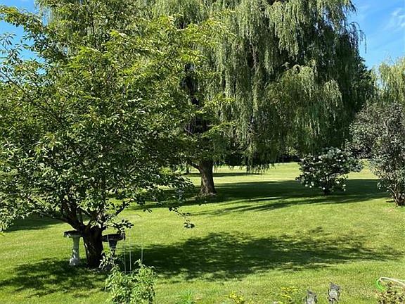 3 bedroom, 2 bath home on 2 private acres. Huge kitchen with lots and lots of cupboards and a space for a breakfast table. Separate dining room nearby that leads to the living room for a pretty open living area floor plan. Bedrooms are all good size! The property is lined with mature trees that gives you lots of privacy and there is a pond in the back yard. The 24x 32 garage offers enough space to park two cars and still have room for toys/a workshop area. Seller is offering the stove and fridge too!
