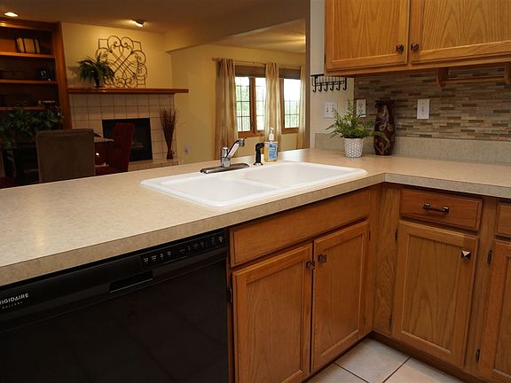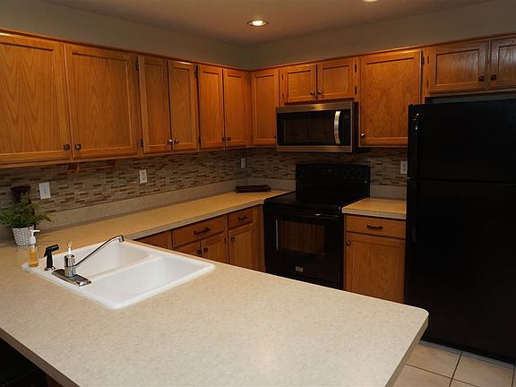 Captivating main floor condo conveniently located on Windsor Lake! Updates include windows & blinds, appliances all stay, tub/shower, water heater and more. Gorgeous lake views inside and out. Open floor plan with spacious dining area, cozy gas fireplace, built-in desk ideal for work from home. Kitchen with glass tile backsplash and great cabinet and counter space. Generous sized laundry room. Abundant storage and attached garage. Won't last!