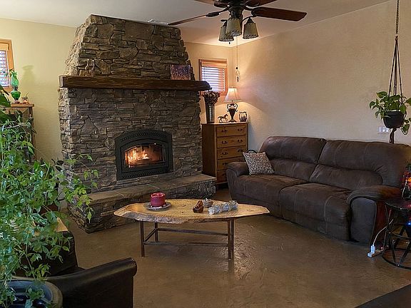 Delightful cozy Williamson Valley Equestrian Property located in a lovely neighborhood (families and equestrian folks) with easy access to Prescott Downtown (10 min) and Embry Riddle University (15 min). This 3-bedroom plus office (easily converted to a 4th bedroom, because it already offers a space for a closet), 2-bathroom home is in superb condition and has textured concrete floors all throughout the house with a gorgeous fieldstone wood burning fireplace as the focal point of the living room. This family friendly just recently painted home with a split floor plan features lots of HEALTHY gorgeous trees providing shade, beauty and privacy. Two large porches with comfortable sitting areas are located on south and west sides designed to allow you to enjoy the Arizona outdoors and the magnificent view of Granite Mountain. From the garage you enter the mud room/laundry room into the open kitchen, which flows into the eating and sitting areas. This very well insulated, custom built home is only 15 years old, a high quality structure with lots of extras like copper sinks in master bathroom and kitchen, Anderson wood windows, new water heater. It has a fully fenced large backyard, an additional smaller dog kennel right next to the house, two spacious horse or other livestock paddocks (pipe fencing/no climb) with a 10 x 10 covered enclosure, a newly build 8x12 workshop and a bike shed. PLEASE NOTE: Due to our relocating schedule the earliest moving-in date for the new buyer is June 1st 2021. THANKS :)
