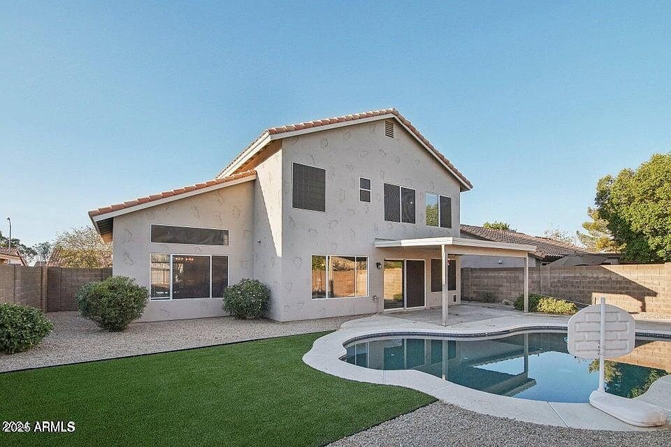 Very popular floor plan in the highly desired Hillcrest community. This home has 4 bedrooms and 3 full baths and has been upgraded recently. The home has 2 A/C units replaced in 2023, newer pebbletech pool along with porcelain wood look tile in the kitchen and bathrooms, Painted cabinets, granite counters and lots of other upgrades. New carpet was just installed and interior was just painted. New gravel in the yard along with artificial grass in the back. The exterior was also just painted in 2023. New garage floor epoxy just completed as well. This home is a must see
