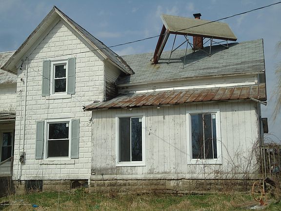 Fixer-upper opportunity! 2-story, cast-stone farmhouse, metal roofing on 5 acres. Great bones! Newer windows. Cash only. Sold "As Is"