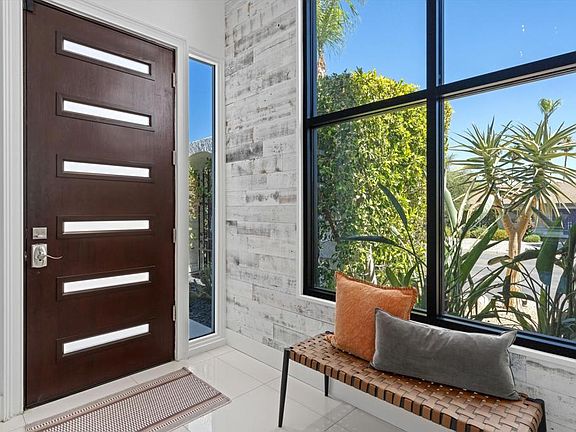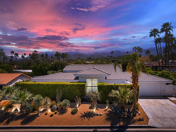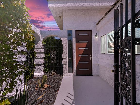 Mid Century Modern, extensively remodeled designer home in South Palm Desert!!!This home offers the newest technology many systems can be controlled by your smart phone. Grand formal entry leading to open floor plan with designated areas for kitchen dining and living room. Entire room has a wall of glass doors to bring the outside in! Oversized white porcelain tiles allow for glamour and continuity throughout the home. Floor to ceiling original brick fireplace lends another Mid Century touch. Gourmet kitchen with high end stainless appliances, new cabinets, sink and disposal. Oversized Master suite with an additional attached room for an office or sitting area features a beautifully remodeled high end bathroom. Additional bedrooms host outdoor patios for privacy and enjoyment. Private outdoor living area includes Pebble Tec pool salt water pool, gas fire pit, outdoor lighting, lush landscaping including fruit trees and mountain views. No HOA and close to El Paseo! This house has it all!