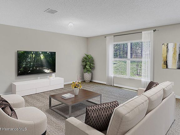 Discover the charm of efficient living in this thoughtfully designed three-bedroom, open-concept home. The clever layout seamlessy connects the living, dining, and kitchen areas maximizing space. This all concrete block constructed home embodies simplicity without sacrificing style. The well-appointed kitchen comes complete with a stainless-steel range, refrigerator, built-in dishwasher, and microwave. The laundry room comes equipped with a washer and dryer. The primary bedroom has an ensuite bathroom and walk-in closet. This home comes complete with a state-of-the-art smart home system. Pictures, photographs, colors, features, and sizes are for illustration purposes only and will vary from the homes as built. Home and community information including pricing, included features, terms, availability and amenities are subject to change and prior sale at any time without notice or obligation. CRC057592.