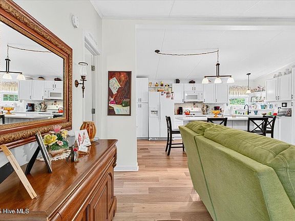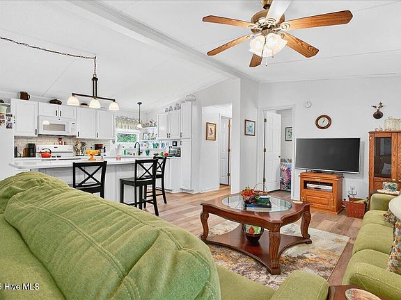 This sweet coastal cottage is move in ready. Sit on the screened front porch and enjoy the warm breezes or sit on the open deck and catch some vitamin D. Open concept living and kitchen, which has been renovated with new cabinets and solid surface countertops. Seperate dining room has been added to the rear of the home, Spacious primary bedroom and bathroom with walk-in shower, new vanity and countertops. Two guest bedrooms on the opposite side of the house as well as a guest bathroom with new vanity and countertop. Fenced in back yard with storage building and beautiful landscaping. And you can access Sunset Beach Island, stores, restaurants, banks etc with a golf cart