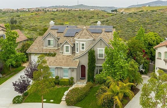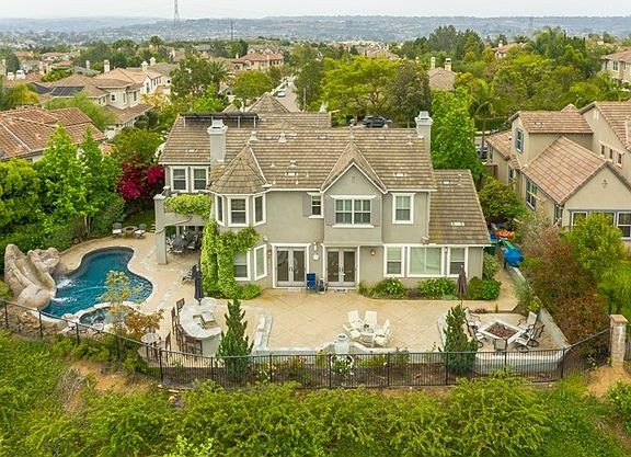 Gorgeous 5 br/4 ba La Costa Oaks Executive home on quiet street, with sweeping canyon views. Among the many fine features, this home has a custom designed pool, with water slide, waterfall, grotto and spa. Dual zoned a/c is powered by fully paid-for solar unit, virtually eliminating the electric bill. A downstairs bedroom with full bath is perfect for a Nanny, elder parent, or guests. Neighborhoods: La Costa Oaks Equipment: Garage Door Opener,Pool/Spa/Equipment Other Fees: 0 Sewer: Sewer Connected Topography: ,LL
