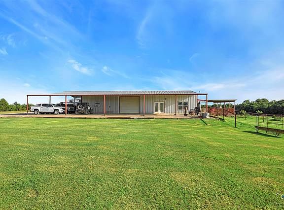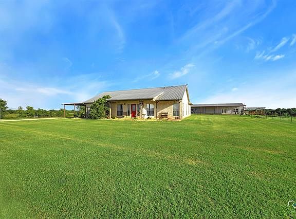 TEN THOUSAND DOLLAR CREDIT TO BUYER! This charming 1,733 SF Ranch Style home sits on 17+ acres of plush Coastal Bermuda. Catch the South breeze from the covered patio at the main house or on the gorgeous 600 SF covered deck at the 983 SF guest house overlooking Texas sunsets over the bass stocked pond. This property also offers a 1,970 + SF shop with over 1,500 SF of covered parking, work area, or patio, complete with electric and water. Fully fenced and Ag exempt with an electric gate, 2 cattle guards, and 2 water wells. Load up your livestock, toys, and boat as you're only minutes away from Lake Texoma! Virtual Tour in media. Call us today to get your dream home and $10k!