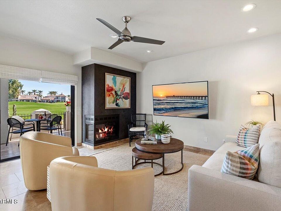 Experience Luxury Living in this Fabulous Remodeled Gainey Golf Course Townhome with Unparalleled Views and Prime Location in the Pavilions. The Popular Floor Plan features an Open Kitchen that flows into a Spacious Living/Dining Room offering Breathtaking Views of the Golf Course. Enjoy the Comfort of 2 Master Suites with Private Balconies and Master Featuring a Unique 2-Way Fireplace leading into the Bathroom and Private Balconies on each bedroom PLUS LOFT! Indulge in Designer Touches throughout with Extensive Travertine, Quartz, Stainless Steel & Granite. Luxury Resort Style Living in Prestigious Gainey Ranch, Walking Distance to Gainey Village Shops & Community Clubhouse, Fitness Center, Pool/Spa, Tennis Courts and Gated Entry.