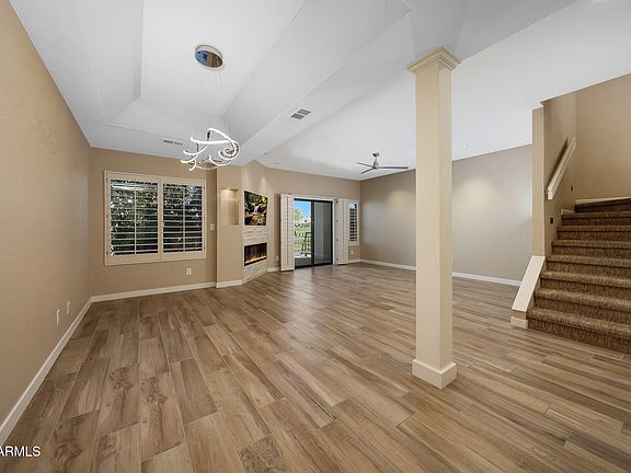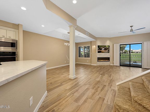 Effortless Sophistication in the Heart of Gainey Ranch Perched on a premium lot with panoramic views of shimmering lakes and the rolling fairways of the prestigious Gainey Ranch Lakes Course, this fully reimagined townhome offers a seamless blend of modern luxury and timeless desert serenity. Step inside to experience a light-filled, open-concept design where every detail speaks to quality and taste. The chef's kitchen is a masterclass in form and function—dressed in sleek quartz countertops, anchored by a Sub-Zero refrigerator, Wolf cooktop, and a built-in wine refrigerator, perfect for effortless entertaining. Rich, wood-look tile flooring grounds the space with warmth and continuity, while plantation shutters offer understated elegance throughout. (continued)