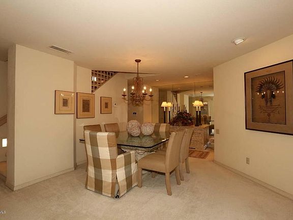 OFFERED FULLY FURNISHED INCLUDING MOST ACCESSORIES , ART & ETC . CALL LISTERFOR DETAILS. A Rare 3 Bed-3 Bath Townhouse with Golf Course views in the Pavilions @ Gainey Ranch. Quiet interior end unit. Two Master suites upstairs, both with separate tubs and showers. Gorgeous views from balcony deck of Mountains, Water & Golf Course! 3rd Bedroom with 3/4 bath downstairs. Living room with Fireplace & direct access to spacious patio. Formal Dining PLUS eat in Kitchen. Spacious North Patio. 2 Car Garage with direct access.