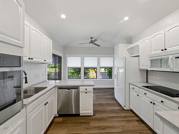 Experience luxury and convenience in this turnkey 2-bed, 2-bath condo at The Pavilions in guard-gated Gainey Ranch. This single-level home offers a spacious open layout, 14-ft ceilings, skylight, and a large primary suite with a custom wardrobe and spa-style bath. Inside laundry with washer and dryer for your convenience. Enjoy peekaboo mountain views from the private patio. The Pavilions offers a community pool and spa. Residents can also enjoy the Gainey Club House with a lap pool, club room, fitness center, pickleball, and tennis courts. Includes 2-car garage with epoxy floors.