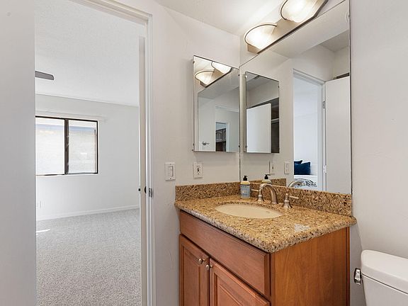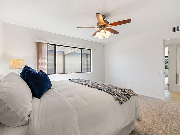 This 2-bedroom, 2 bath condo offers a spacious walk-in closet in the primary bedroom, granite countertops and stainless steel appliances in the upgraded kitchen, and an attached single-car garage. This is an end unit on a spacious green belt with a pool right next door and a tennis court nearby.