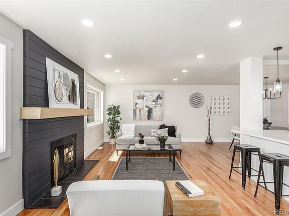 Welcome to your dream home in Wheat Ridge, Colorado! This impeccably remodeled residence boasts luxurious features throughout, offering the perfect blend of comfort and sophistication. Step inside to discover a stunning main level, featuring a gas fireplace, a convenient coffee bar, and a gourmet open kitchen complete with a waterfall island adorned with quartz countertops.