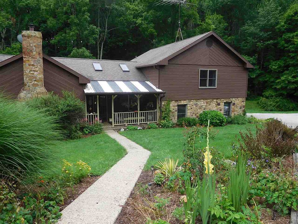 This poplar and stone home on 17 plus acres is a wonderful getaway with all the amenities for comfortable living. Just minutes from all of Bloomington's offerings and a great location for Crane commuters. Beautiful yard space with flowering trees, perennial gardens and lots of fruit trees. There's even a small barn for storage, workshop, or extended garage. The outside wrap-around deck connects to the fenced pool deck right outside the master suite and reading area. The large master bath has tile floor and marble surround shower. The Kitchen connects to living and family rooms with large windows, vaulted ceilings and skylights that make the kitchen feel bright and spacious and provide beautiful views of the woods. A large pantry is conveniently located between the garage and kitchen. The split-level design makes for easy half flight access to the garage or upstairs to three bedrooms with walk-in closets, a full bathroom with laundry area and an additional bonus room. The grounds are nicely landscaped and are very fertile making for great garden space. There is some pasture space for horses or other animals and plenty of woods. The circle driveway in front accesses the front door or you can drive down to the oversized 2 1/2-car garage (with workshop space) and where there is also plenty of guest or RV parking. Reverse osmosis water purification system. Great well - 75' of usable water in drought years. City water access is only 20' from well head. High efficiency heat pump. Original home is two center rooms built in 1890's, totally restored, additions to east with master area and west with garage and bedrooms. Smithville Communications provides very fast DSL internet service. New cell towers are scheduled to be constructed on I-69 in 2019. A mini-tower was put up during construction of I-69 which provided an excellent cell signal. If you are looking for a unique, country home on a beautiful parcel of land, yet close to town, then you will not want to miss seeing this one... schedule your showing today! Please exclude stain-glass window art mounted in living room and stain-glass window art mounted in wall of master bedroom. Click on 3D tour icon to see awesome, immersive virtual tour of this beautiful home! NOTE: Be careful with GPS instructions - any that take you out onto I-69 are NOT correct.