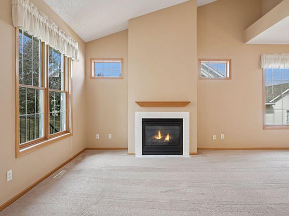 Welcome to 7274 Bordner Drive, a spacious and open 3-Bedroom/3-Bath townhome in choice Pointer’s Ridge! The gracious foyer greets you with lovely hardwood floors, and leads to the sun-drenched living room. The living room is accented with a soaring vaulted ceiling, neutral carpet, bright windows, and a mood-setting gas fireplace. Step into the sparkling sunroom to find stacked windows, a vaulted ceiling with fan, and sliders to the deck. The expandable dining area is open to the living room, and offers eye-catching overhead lighting. A convenient pass-through to the kitchen makes serving a breeze! The well-designed kitchen boasts abundant cabinetry, expanses of sensible workspace, and a sunny eat-in area with bay windows. Hardwood floors add classic character and style. The main floor owner's suite is spacious and private, with a large bedroom with neutral carpet and a large walk-in closet. The private, spa-like owner’s bath has a tub, a separate shower, and a large vanity with dual sinks. A second bedroom features a double closet and a ceiling fan, and there is a three-quarter bath mere steps away. This flexible space would be ideal as a den or home office. The main level is complete with a laundry room with cabinetry, a utility sink, and easy access to the garage. Travel to the lower level to find yet more fabulous living! The vast family room has neutral carpet, two egress windows and a ceiling fan. Enjoy movie or game night in this inviting space. Or sit in front of the gas fireplace to catch up with friends over snacks and beverages! There is plenty of room for your game tables or exercise equipment. A third bedroom is perfect for a guest suite, with soft neutral carpet, a walk-in closet, an egress window, and an adjacent ceramic tiled three quarter bath. Rounding out the lower level is a vast mechanicals/storage room. Your cars will be protected from the elements in the attached two car garage! Convenient yet quiet location, close to freeways, shopping, dining and services. Plus an easy commute to downtown St. Paul or the International Airport!