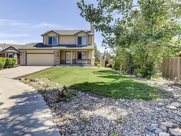 Brilliant 2-story home in the Springs Ranch area - on a quiet cul-de-sac. It's only a few of minutes drive to the Powers Corridor that gives you access to loads of restaurants, stores, and entertainment; schools and parks are also close! Peterson and Schriever AF bases are a short commute. This home has plenty of curb appeal - brick accents, fenced-in front porch, over-sized 2 car garage, and lovely landscaping. Step inside the home to find beautiful wood flooring in much of the home. The spacious Living room has a large window that lets natural light flood the room. The cozy gas fireplace will keep you warm in the winter. The Living room is open to the Dining room. The Dining room also has wood flooring, is open to the Kitchen and has a walk-out to the massive backyard. The Kitchen has tile counter tops, stainless steel appliances, a window over the sink that looks out to the backyard and so much more. There is a 1/2 bath/laundry room on the main level as well. Let's head
