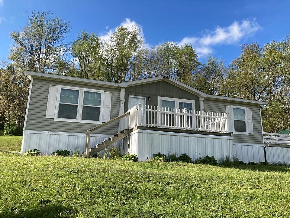 Home is 28'x44' with double wrapped insulation; new heat pump 2014, propane gas fireplace new 2016. Amish built shop building 26'x12' with garage door, newly built front and rear decks, rear wraps around, . Samsung frig double door, with bottom freezer; dishwasher. Home comes completely furnished Home originally had 3 bedrooms but the original owner remove one to make the living room larger. That could be put back if needed.