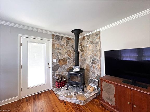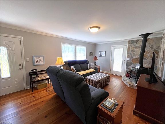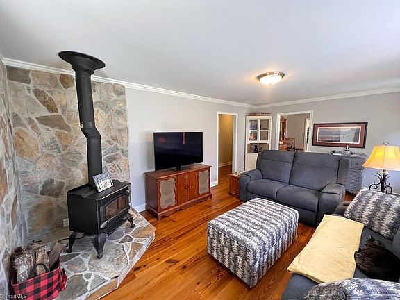Beautifully updated 3 bedroom, 1.5 bathroom home located just outside of Madison on 3+ acres. Corner lot with a circle gravel drive. This home boasts beautiful pine wood flooring, granite kitchen countertops with updated cabinetry, stainless dishwasher, refrigerator, and gas range, large living room with a cozy woodstove, covered side porch shaded by a huge mature tree, brick side patio great for entertaining, and a wood storage building. Schedule your appointment today!!!