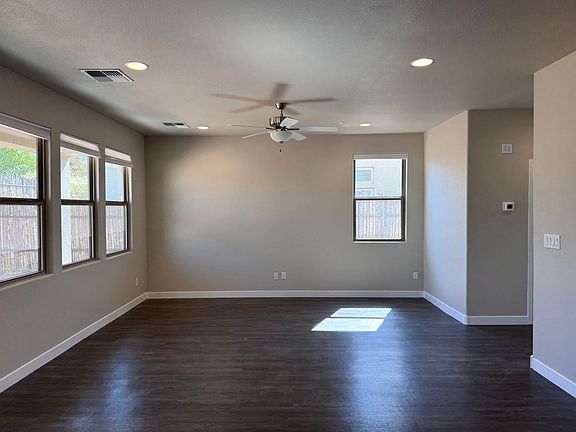 Welcome to this modern 3-bedroom, 2.5-bathroom home located off the 599 by pass, making an easy commute to Los Alamos and Albuquerque. This property boasts modern amenities including air conditioning, a refrigerator, dishwasher, disposal, and a microwave. The kitchen is equipped with a gas stove/range, perfect for those who love to cook. Open floor plan and many windows give the home a light and spacious feel. The home also features a convenient washer/dryer setup upstairs near bedrooms, making laundry day a breeze. The flooring is a mix of plush carpet and sleek laminate, offering both comfort and style. Step outside to a charming patio, enclosed by traditional coyote fencing, providing a private outdoor space for relaxation or entertaining. The home also includes a spacious 2-car garage. Stay warm during the cooler months with the efficient gas forced heat system. This home combines functionality with the charm of Santa Fe living, making it a must-see property.