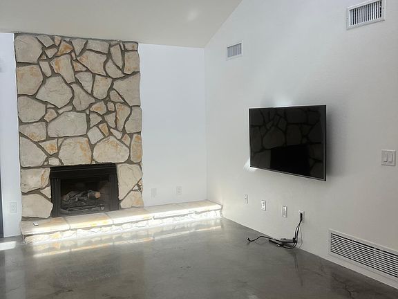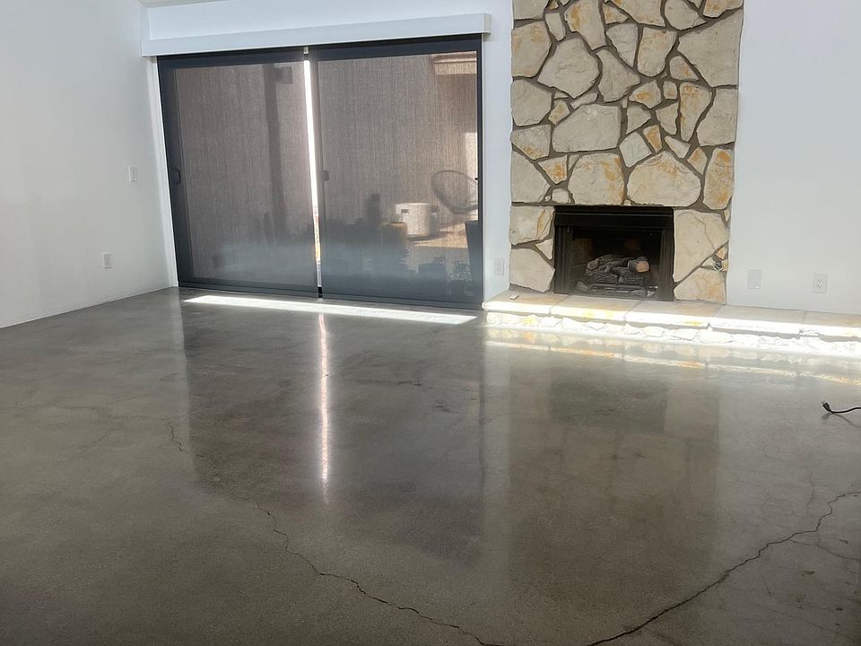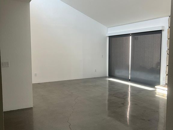 Stunning Hugh Kaptur architecture in this updated two bedroom, two bath, modern condo located in desirable South Palm Desert neighborhood. Within walking distance of shops and restaurants on El Paseo, Whole Foods, and desert crossing shops. Although a condo, this property has no shared walls except for the attached 2 car garage, which contains ample storage, and a washer and dryer unit. All new energy efficient windows with sun UV protection motorized blinds. Kitchen has all upgraded appliances, including dishwasher, stove, refrigerator. Beautifully polished cement floors throughout with an open floor plan in living room, containing 20+ feet high, vaulted ceilings with clerestory windows and beautiful gas rock fireplace. Both bedrooms are spacious with guest, having private access to guest bath, which can be closed off to create an en suite bedroom. Walk-in closets in both bedrooms with master containing IKEA. Pax system. Master also has a large walk-in shower. Brand new AC heating unit and tankless hot water heater are energy efficient. Keyless front door entry with ring doorbell system for security. Garage door opener keypad outside for Amazon deliveries if needed. This is a beautiful property in an excellent location, and will go fast! Owner pays for water, trash, HOA dues. Tenant is responsible for electric and gas utility expenses. Tenant is responsible for area inside patio. Gardener (included in HOA) takes care of everything outside of patio area. No smoking. No pets. May consider small dog. Two car attached garage for parking. Guest parking available. 12 month lease. First month and security deposit due at signing.