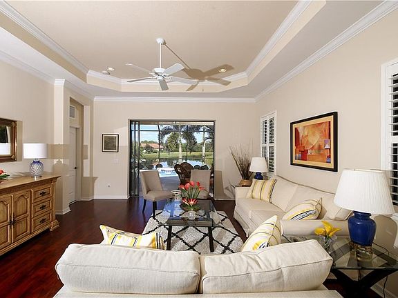 GORGEOUS LAKE & TROPICAL LANDSCAPE VISTAS PROVIDE THE PERFECT SETTING FOR THE RELAXED COASTAL LIFESTYLE! Light bright great room overlooks the expansive Lanai, pool & serene lake views. Beautiful 2 BR, 2 BA, Den home features warm neutral finishes, 10' and tray ceilings, crown molding, wood laminate floors in main living areas, bedrooms & den and plantation shutters thru-out. Lifestyle design features spacious dine-in kitchen open to dining & great rooms, with gleaming granite counters, expansive breakfast bar, stainless steel appliances. & closet pantry. Owner's suite with lake view includes 2 walk-in closets, dual bowl vanity and tiled walk-in shower. Private guest bedroom and bath is ideal for family or guests. Double doors to study provides a space for quiet reflection, hobbies or home office. Convenient interior laundry room has upper shelves, drop-in sink, washer/dryer & closet. Tuscan inspired architecture, tile roof, paver drive and walkway, Low-E thermal windows and hurricane shutters complete this wonderful Belleisle home. Most of the furniture is offered under a separate agreement. Ideally located in private, gated Country Club East where memberships are optional, you will love the Maintenance Free Landscaping, 2 Resident Clubhouses, Fitness Center, 2 Heated Pools, spa & areas for great social gatherings. Live in one of the countries top 2 master planned communities in the USA where you can shop, dine, play tennis or golf, see a movie & are just minutes to I-75, UTC shopping Mall & more!
