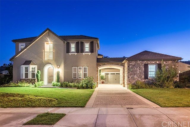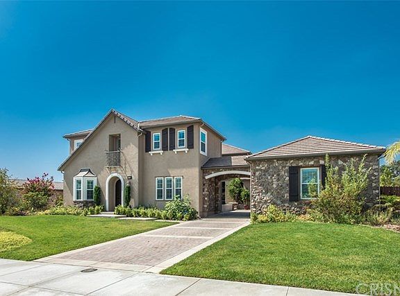 REDUCED $50k!! Spectacular Toll Brothers home in gated Pinnacle in Moorpark Highlands built in 2011* Popular floorplan features formal living room with crown molding, fireplace, built-in shelving wainscoting* Formal dining room with chandelier* Family room has fireplace, built-in shelves, surround sound* Hardwood floors in most of first floor* Downstairs maid suite* Fabulous gourmet island kitchen with slab granite, high-end stainless steel appliances (double oven, microwave, dishwasher, range and hood) plus extra-large built-in refrigerator* Upstairs has sumptuous master in back with balcony with mountain and canyon views, giant walk-in closet with drawers and organizer, spa tub and oversized shower* 2 more bedrooms up with private baths plus a bonus room* Separate casita has private bath* 3 car garage through porte cochere* Side patio* Gigantic 34,000 sf lot, mostly flat, with gentle downslope for fruit trees? Huge play lawn, covered patio and outdoor kitchen ready area* Prepared for future pool* Solar tiles in rear roof are aesthetically pleasing and provide low cost electrical power * No Mello Roos***