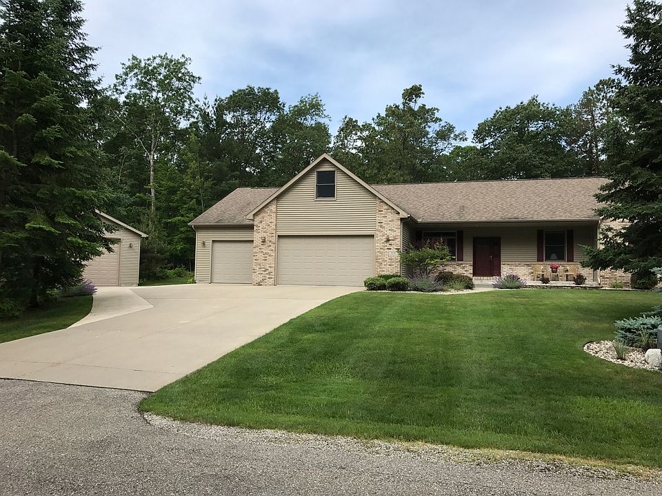Brick and vinyl ranch with 4 bedrooms,finished loft, sunroom, breakfast nook, dining room,2.5 bathrooms, heated attached 3.5 garage and additional 560 sq ft finished detached garage.