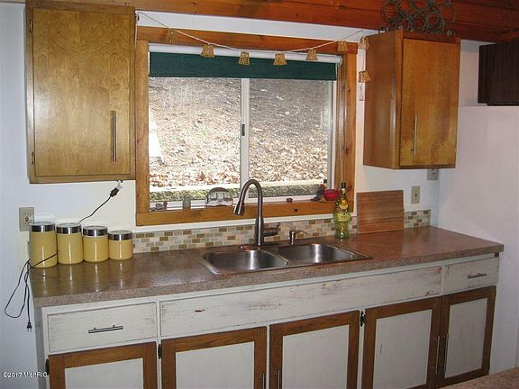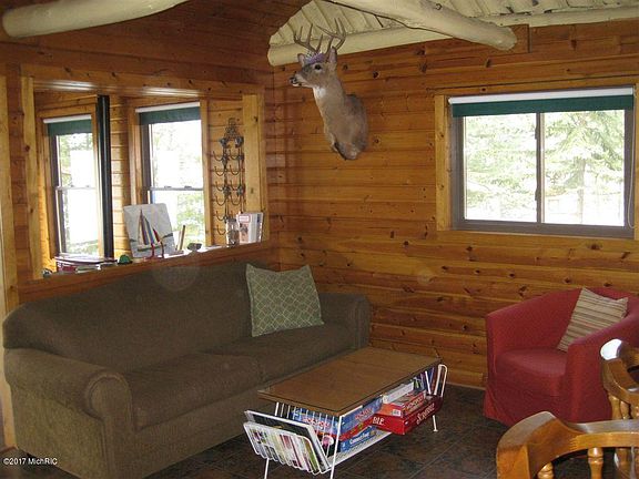 **One party listing.** The perfect cottage located on Gun Lake near Freesoil, Michigan. This home features a cozy log cabin feeling with a wonderful open floor plan! Main floor master bedroom, plus full bath with attached laundry room. Upstairs loft offers additional sleeping space, plus main living room has two sofa sleepers (also available). The large 10x22 deck overlooks the large sandy beach, newer dock and offers views of the island! This home has had numerous improvements over the last 5 years, including a sandy beach area, new dock, exterior paint, a new metal roof, large asphalt parking area, and additional drainage to prevent erosion. Gun Lake is a picturesque 200 acre all-sports lake, with great fishing, fun traditions and even an island in the middle!