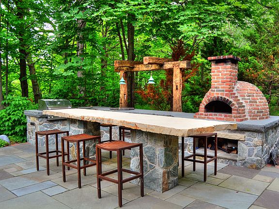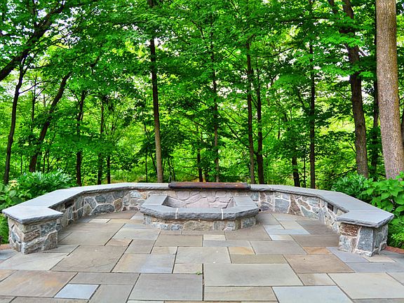 Quality and detail – feels like new construction. Spectacular property with beautiful woods and views of the river, surrounding the gourmet outdoor kitchen with snazzy fire-pit, bar, 60,000 BTU burner, grill and a pizza oven! Open Concept, Sunny throughout, Large room sizes, Stunning family room with cathedral ceiling, cherry and granite eat-in kitchen and four natural fireplaces with gas start are just a few of the amenities. Retreat to the Master suite, with granite counters and travertine tile to enjoy a spa bath. The finished lower level includes a home theater with a 110? 1080p Hi Def projection screen and surround sound, full size windows, and climate controlled wine cellar. The second, detached, 3 car garage includes a roughed in 2nd floor with separate well, electric, security system, and 240 watt plug-in.