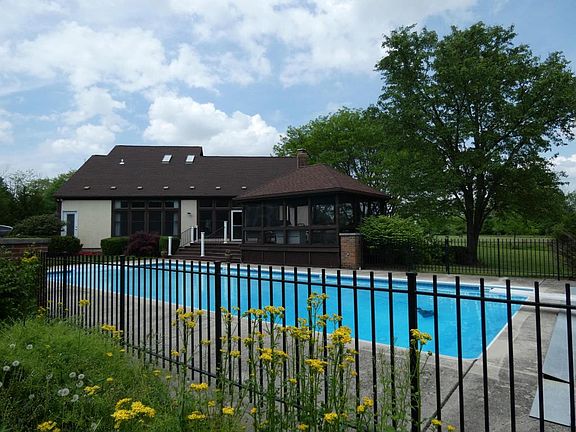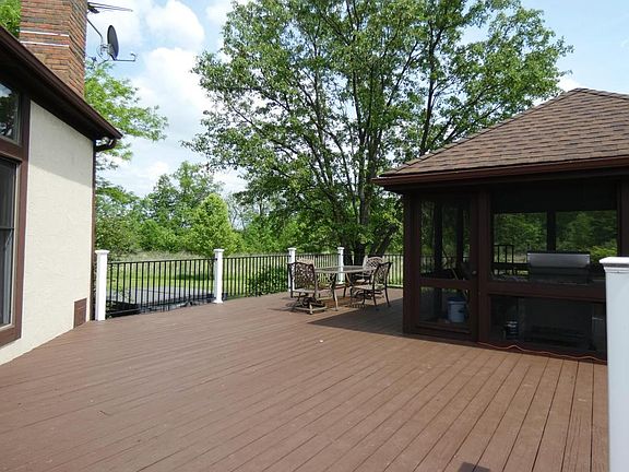 An entertainer's dream! 5 Acres with in-ground pool,hot tub,huge deck,screened pergola, and beautiful landscaping - this home is spectacular & minutes from shopping, schools, and I-270! Soaring ceilings, walls of windows, stunning woodwork make this home truly unique. Large eat-in kitchen with bay window features new appliances, granite counters,planning center & loads of storage. Massive great room with cathedral ceilings features WBFP & access to deck & pool. First Floor master suite features floor to ceiling windows overlooking stunning back yard, master bath with walk-in shower, massive master closet with built-ins . Newer washer & dryer stay! 2nd floor features 3 large bedrooms and a loft! new carpet throughout. Large trees enhance privacy, extra storage garage & fenced yard too!