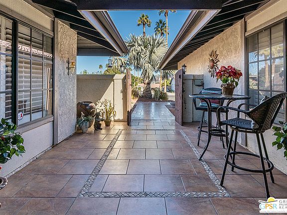 Nestled in Canyon Cove, one of the most sought-after neighborhoods in the desert, this meticulously upgraded home offers the perfect blend of style, comfort, and convenience. Ideally located near El Paseo's world-class shopping and dining, The Living Desert Zoo and Gardens, prestigious schools, scenic hiking trails, and premier golf courses, this property captures the essence of luxurious desert living. This home features dual en-suite bedrooms, with an optional third bedroom that includes a cozy fireplace ideal as a den, office, or guest space. The spacious interior showcases a recently remodeled kitchen, newer stainless steel appliances, and modern finishes. Granite countertops, tile floors throughout and fresh paint in a neutral palette. Updated master bath with sleek counters and dual sinks. Plantation shutters, vinyl fencing, and replaced dual AC units and hot water heater, with shade screens for efficiency and comfort. Step into your private retreat, complete with a saltwater spool (spa/pool), extended Alumawood patio cover, and firepit, all surrounded by low-maintenance desert landscaping. Enjoy access to Canyon Cove's community amenities, including a pool, sauna, steam room, pickleball, and tennis courts. Spectrum Cable and internet are also included in the low $168/month HOA dues. A rare 3-car garage and ample storage add to this home's appeal, one car is currently utilized as a workspace. Move-in ready for your desert lifestyle.