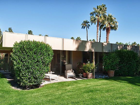 View website: http://72759elpaseo.CanBYours.com - Welcome to desired community of Sandpiper and the Mid Century Architecture of William Krisel. With a bright and open floorplan, this home has 2 bedrooms and 2 bathrooms which have natural lighting. Step outside to either of the 2 patios. The back patio features a private spa and amazing southern views and is just steps away from the pool. Walking distance to El Paseo shopping and dining. This property won't last long.