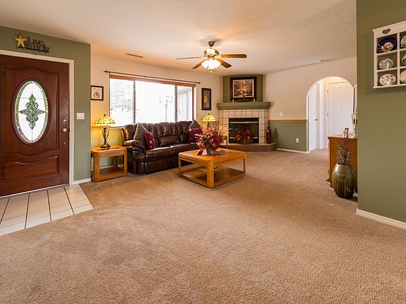 Move right in! You will love this home! The layout/ floorplan is amazing, giving tons of living space. Enjoy the open great room, new carpet throughout, and split bedroom floorplan! Relax in the bright living room near the cozy fireplace. Updated kitchen with modern appliances, granite countertops, spacious pantry & breakfast bar are perfect for entertaining. Peaceful, private master bedroom and bathroom for the perfect get-a-way at home. Serene cul-de-sac location on oversized lot, covered patio, fenced backyard, horse shoe area, newly planted grass & automatic sprinkler system. Plenty of room for your toys and RV with double gates to the backyard, separate shed/workshop & 2 car garage. Fully and beautifully landscaped front yard with mature trees. Come view this home before it's gone!