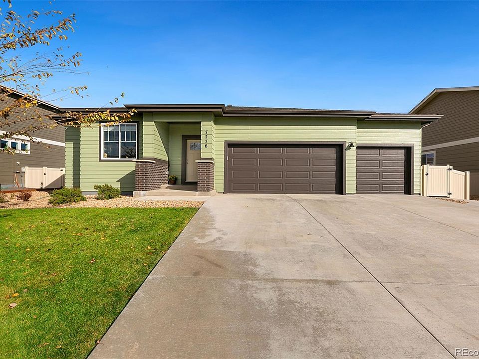 Welcome to this beautiful contemporary home in the wonderful community Hartford Village of Wellington, CO. This is a Hartford Home where no stone has been left unturned. The exterior paint, hail rated roof, and gutters are all only 1 month old. We think you'll love the finishes and the two tiered backyard patio is great for entertaining. This is one of a few homes with a three car garage. You'll enjoy very nice finishes, vinyl plank flooring, and bottom up blinds and drapes on the main level. The eat-in-kitchen with plenty of room for a dining room table favors a formal meal or grab a quick snack at the breakfast bar. The main bedrooms is situated off the living room and features a ceiling fan, carpet and a large master bathroom. Around the corner is the 3rd bedroom and a nearby full bath. The basement has three more bedrooms with direct access to a full bathroom. All bedrooms include an egress window. The family room in the basement is huge. The backyard has a large concrete patio accessed through the dining area. The yard provides ample space for kids and pets to play or to create your own private oasis. It's easy to see yourself entertaining with friends, family and neighbors in this excellent space. With all of this and so much more nearby, including shopping, restaurants, trails, parks, entertainment and an excellent community, why look any further? Schedule your showing today! Hartford home. Close to a favorite local coffee shop and the elementary school. Near the new High School too. HOA Pool Community.