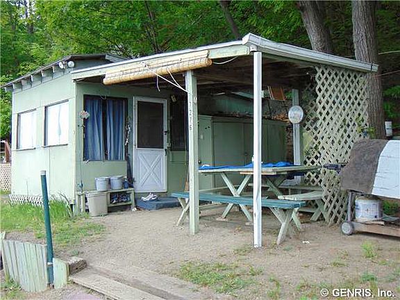 Welcome to camp at the lake. 100 feet of Keuka lake front with good parking and land on either side of the road totaling .55 acres. Structures are extremely rustic but do have electric. You've got a place to rest your head and a working outhouse. Great to use as a summer camp for now and build down the road. Priced well below assessment