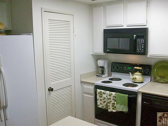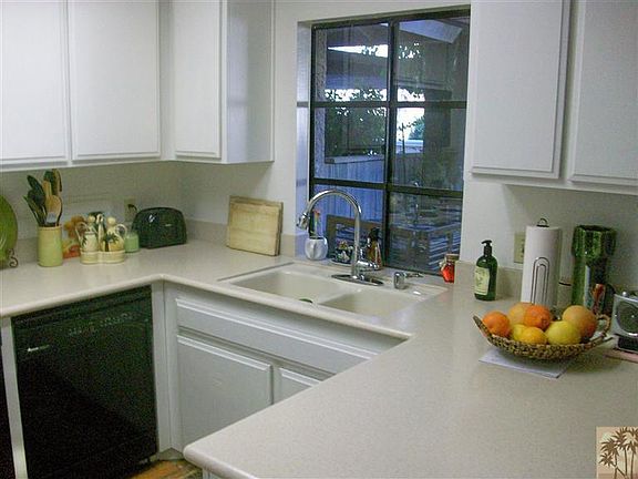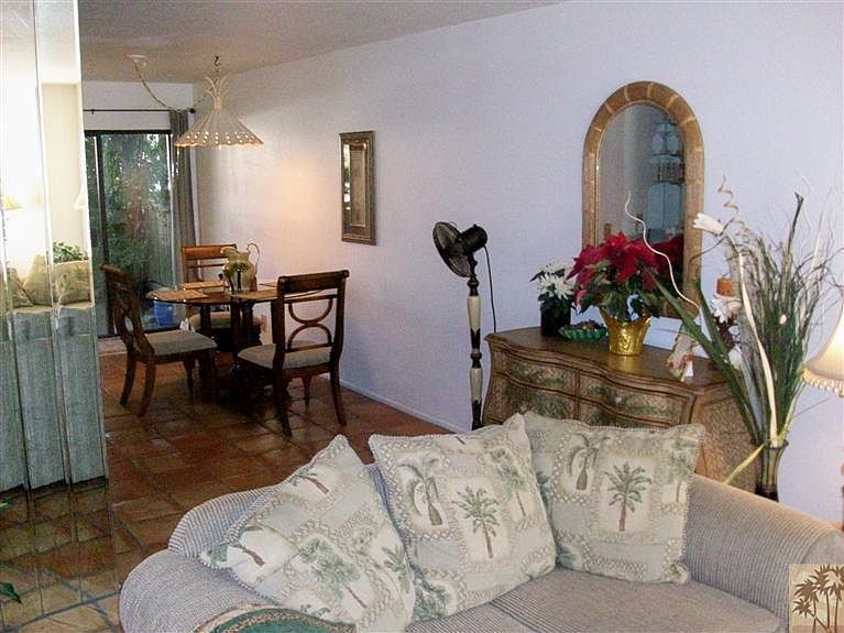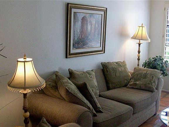 What a delightful desert retreat! Decorated in the unique, warm desert colors, Mexican sautillo polished tile floors on lower level,neutral carpet in bedrooms. Expensive Tommy Bahama style furn. & accessoories in great taste, white shutters thruout, a perfect turnkey property in gated, safe community with pools, tennis & clubhouse. An opportunity to buy a charming, affordable unit