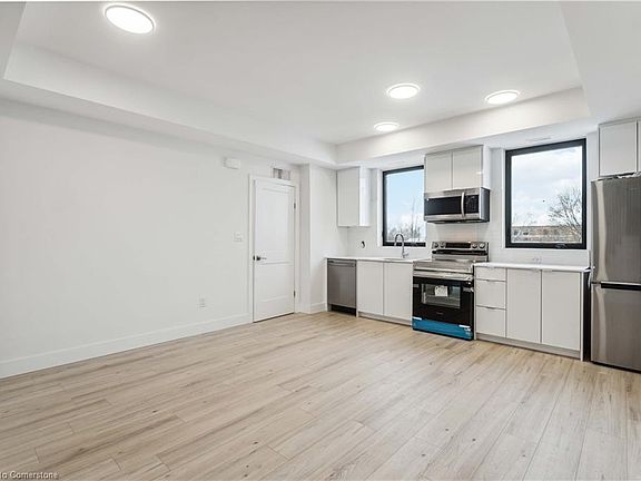 The Boho, Niagara's newest boutique stacked town development located just 5 minutes from The Falls. Step into luxury inside this two-storey suite. 2 bedroom, 2 bathroom corner unit. 9-foot smooth ceilings, modern kitchen with chrome fixtures, stainless steel appliances, quartz countertops, flat panel cabinetry extended to ceiling height, tiled backsplash and wide plank designer flooring. Step upstairs into your bedroom oasis with custom cathedral ceilings and expansive windows. Modern ensuite with privacy window for a sunlit shower. Ensuite laundry with stacked washer dryer. Steps from public transit, minutes to grocery, retail and QEW. Extras: Samsung appliance package, stacked washer dryer.