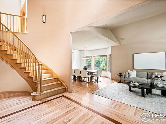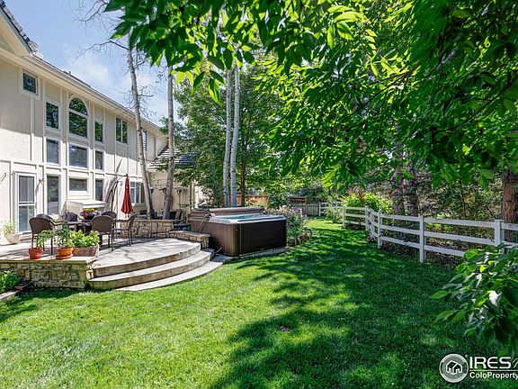 Poised on a sprawling, half-acre lot in Country Club Estates, this home is a true flagship home within the neighborhood! This one-of-a-kind residence is elegantly set back off the street for nice privacy with a circular drive only a few blocks from Boulder Country Club. Gorgeous hardwood flooring extends throughout the entire main and upper levels while large windows provide abundant natural light. Highlighted by a curved staircase, a grand entry extends into formal living and dining rooms. The kitchen features granite countertops, warm wood cabinetry and stainless steel appliances. A wall of vast windows illuminates a great room grounded by a cozy fireplace. Glass French doors open into a private home office complete w/ built-ins. Escape to the spacious upper level hosting graciously sized bedrooms each w/ walk-in closets. Flexible layout with four bedrooms up and one bedroom on the main level with an attached 3/4 bath! The primary suite boasts a remodeled 5-piece bath while a versatile bedroom features a unique loft. Entertainers delight with a backyard escape flaunting multiple patios, mature landscape and hot tub. Enjoy two newer furnaces, new hot water heaters, a new air conditioning and slate tile roof. Oversized 3 car garage for all your Colorado toys and an additional adjacent golf cart garage. HOA includes pool, tennis, park and volleyball court! Welcome home!