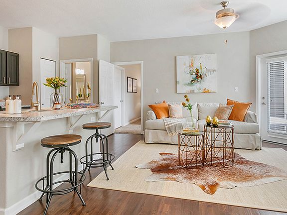 - Exterior features: Attached Garages, Balcony, Coffee Bar, First Floor, Flexible Lease, Near Public Transit, On-Site Maintenance, On-Site Management, Package Receiving, Pet Friendly, Pet Park, Pet Washing Station, Select Fixture & Finish Upgrades, Smart Home Technology, Smoke Free, Storage Fee: $100, Sundeck, TV Lounge, Top Floor, Upgraded Fixtures & Finishes Throughout, View Type: Wooded View, Yoga Studio