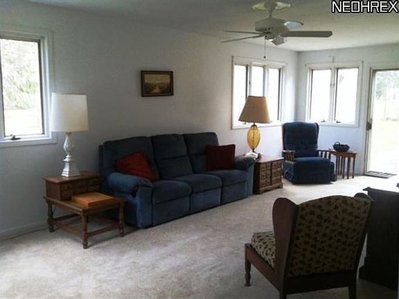 This ranch has a lot to offer! Large living room with fireplace. Spacious 18x11 all season room & shelves and cabinets. Kitchen w/eat in area and all appliances stay. Home sits way back from the street w/side loaded 2 1/2 car garage, new full house filtration system, Covered front porch, heated garage, and fenced beautiful backyard, Only minutes from downtown Chagrin Falls. Seller just replaced carpet. Home Warranty. Newer septic.