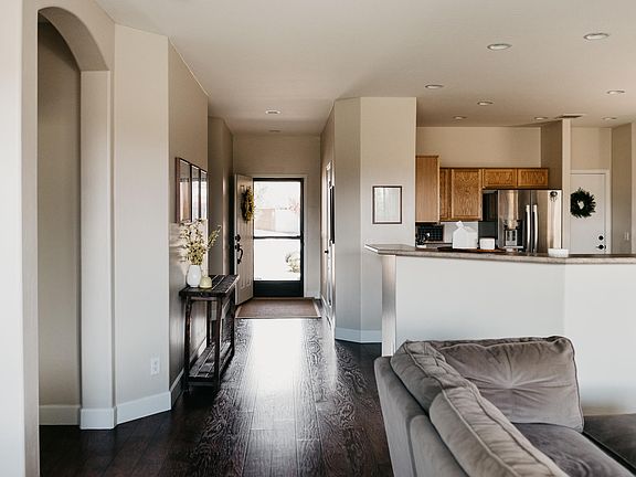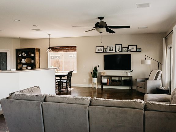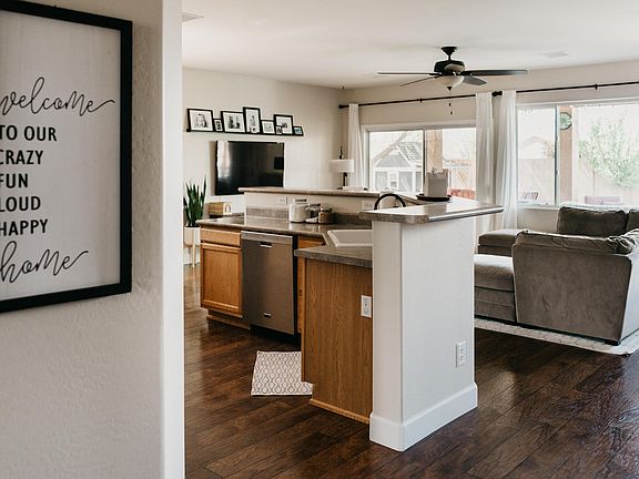 Desirable 'Winslow' Plan in Pronghorn Ranch. 3 bed, 2 bath with laminate floors throughout with the exception of hexagon marble flooring in 2nd bath. Wall of windows in the great room keep the space bright and open. 2 kitchen islands great for entertaining. Spacious bedrooms are all accompanied with walk in closets. Large sliding door opens to extended paver patio andquiet green back yard. Raised garden beds and adorable playhouse round out the back yard. Owner/Agent