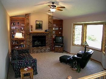 ? Updated 2 story on quiet cul-de-sac location with spectacular view of pond and small forest on far side ? relax on the deck overlooking a quiet pond with mallards, mergansers, wood ducks, geese, egrets and herons. Raised bed garden and two Honeycrisp apple trees in side yard. ? Ceramic tiled foyer opens to spacious living room box bay window and adjacent separate dining room overlooking private rear yard. Efficient and spacious center island kitchen with oak raised paneled cabinetry with pantry. Appliances include JennAire cook top with oven, dishwasher, disposal, and refrigerator. New vinyl floors extend into breakfast area with sliding glass doors to deck with picturesque view of pond setting. New lighting in kitchen plus new vinyl extends into oversized laundry/mud room with built-in cabinets. Freshly carpeted and painted vaulted family room with brick wood burning gas fireplace and oak built-ins. Bay window offers lots of natural light and another great pond view. Main floor ? bath off foyer. ? Upper level king size master suite his and hers closets and private ? ceramic tile bath. Two additional bedrooms with new carpet & paint and full ceramic tile bath complete upper level ? Spacious lower level with very large amusement room with game area, daylight windows and storage closet. Large 4th bedroom with walk-in closet. Good storage space also. ? Amenities include: new furnace and central air conditioning in2006, 50 gallon water heater, 200 amp service, air to air exchanger, exterior painted in 2004, 2x6 walls, new roof in 2007, drain tiled with sump pump and battery backup, oak Princeton trim, 6 panel doors, 2 car garage with opener, asphalt driveway.