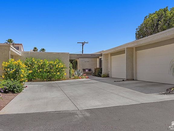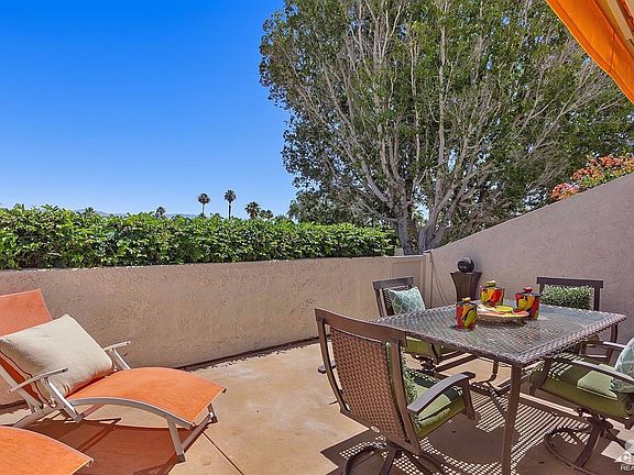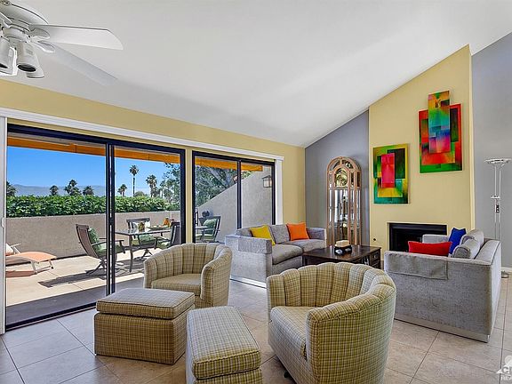 Rented Jan, Feb, Mar & Apr 2021, and Jan-Apr 2022. Seasonal Rental in King's Point within walking distance of all the shopping and dining that El Paseo has to offer! 2 bedrooms, each with it's own remodeled bath. King in master; queen murphy bed in guest room. Tile throughout. Vaulted ceiling with clerestory windows and walls of glass make this one very light and bright. Slab granite with full backsplash in kitchen. Ceiling fans in every room. Fireplace with crushed glass in living area. 3 very private patios with remote awnings: 1 off living area with views of the Chocolate Mountains and valley lights, 1 off dining area, and 1 off master. 2-car attached garage with direct access to condo. Close to pool but not too close. And for all of you hikers: close to the hiking trails of Cahuilla Park. King's Point was designed by Hugh A Kaptur, the last living Palm Springs modernist architect. Rental Rates: Jan, Feb, Mar $3800; Apr, Oct, Nov, Dec $3500. 3 months minimum. Utilities included including wi-if and US/Canada calling. Electric and gas capped at $200 total per month.