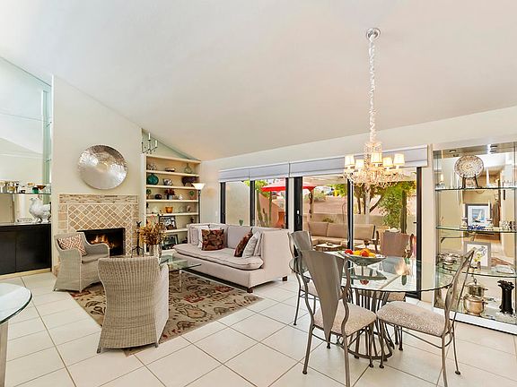 THIS SPACIOUS TWO BEDROOM, TWO BATH CONDO WITH THREE LOVELY PATIOS HAS A QUIET AND PRIVATE LOCATION WITHIN THE COMPLEX. THE OPEN PLAN LIVING/DINING ROOM HAS A FIREPLACE AND VAULTED CEILING WITH CLERESTORY WINDOWS PROVIDING LOTS OF NATURAL LIGHT. TWO SETS OF SLIDERS CREATE A WALL OF GLASS THAT OPEN TO A COVERED PATIO. THE KITCHEN IS OPEN TO AN EATING AREA WITH SLIDERS THAT OPEN TO ANOTHER COVERED PATIO. MASTER BEDROOM WITH A WALK-IN CLOSET AND EN SUITE BATH WITH DOUBLE SINKS HAS SLIDERS OPENING ON TO A PRIVATE WALLED PATIO. INSIDE LAUNDRY AND A DIRECT-ACCESS TWO-CAR GARAGE WITH LOADS OF STORAGE MAKE THIS HOME COMPLETE. KINGS POINT OFFERS COMMUNITY POOLS, SPAS AND TENNIS COURTS. KINGS POINT IS MINUTES AWAY FROM THE LUXURY RETAILERS, FINE RESTAURANTS AND ART GALLERIES OF EL PASEO AND THE SHOPPING, RESTAURANTS AND MOVIE THEATERS OF THE WESTFIELD MALL IN PALM DESERT AND THE RIVER SHOPPING MALL IN RANCHO MIRAGE.