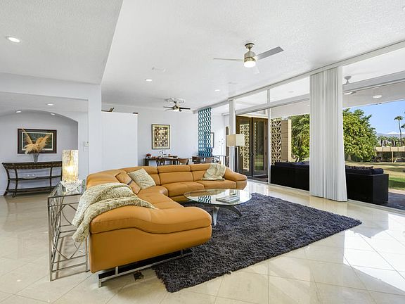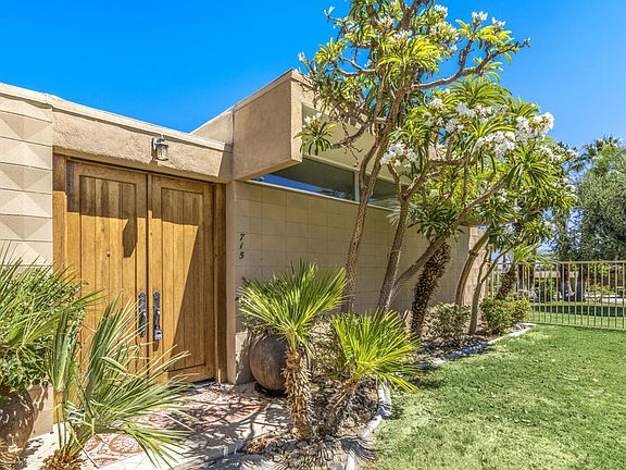 Spacious and pristine 2 Bedroom / 2 Bath - approx. 1,750 square foot unit in the historically designated area of Sandpiper. Entryway, living and dining areas open to the poolside patio and provides an open space with maximum outdoor light and views. Unit features gorgeous polished porcelain tiling throughout, rich wood accents in the kitchens and baths, high ceilings with clerestory windows, and an expanded area off dining for a small office space. Kitchen has been fully renovated with new cabinets, granite countertops and stainless steel appliances. Bathrooms are upgraded with new cabinets and tiled showers. Sip your morning coffee or entertain your friends for evening cocktails while enjoying expansive northern views of the mountains, greenbelt and pool area. Buyers may be eligible for property tax reductions under the Mills Act due to this unit being in the historically designated section of Sandpiper. The unit has 1 garage space (just behind the unit) and is centrally located within Sandpiper - easy walking distance to the shopping and dining of the El Paseo, hiking, and more. Make this your new desert retreat!