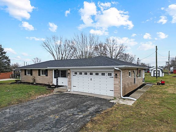 This charming 3-bedroom, 2-bathroom stone ranch on a quiet street has been totally renovated- from a new roof, new furnace, new air conditioner, new water heater, new interior and exterior light fixtures, new bathrooms, updated kitchen and more. The refinished hardwood floors add warmth and character throughout the open-concept home. The center island with granite counters and bar seating is sure to be a gathering place for all, whether it's preparing meals, helping with homework or hosting gatherings. Both full baths have new double-vanities, mirrors and glass shower doors, and there are upgraded features throughout, like new shower heads, lighted ceiling fans in each bedroom and new interior doors. You will love the natural light flowing through the white vinyl windows and the functionality of having enough wall space to decorate. You can enjoy the view of the expansive backyard from the sitting room or the oversized concrete patio. The two freshly painted storage barns provide extra storage, as do the attached cabinets and workshop area in the garage. Home qualifies for USDA loans!