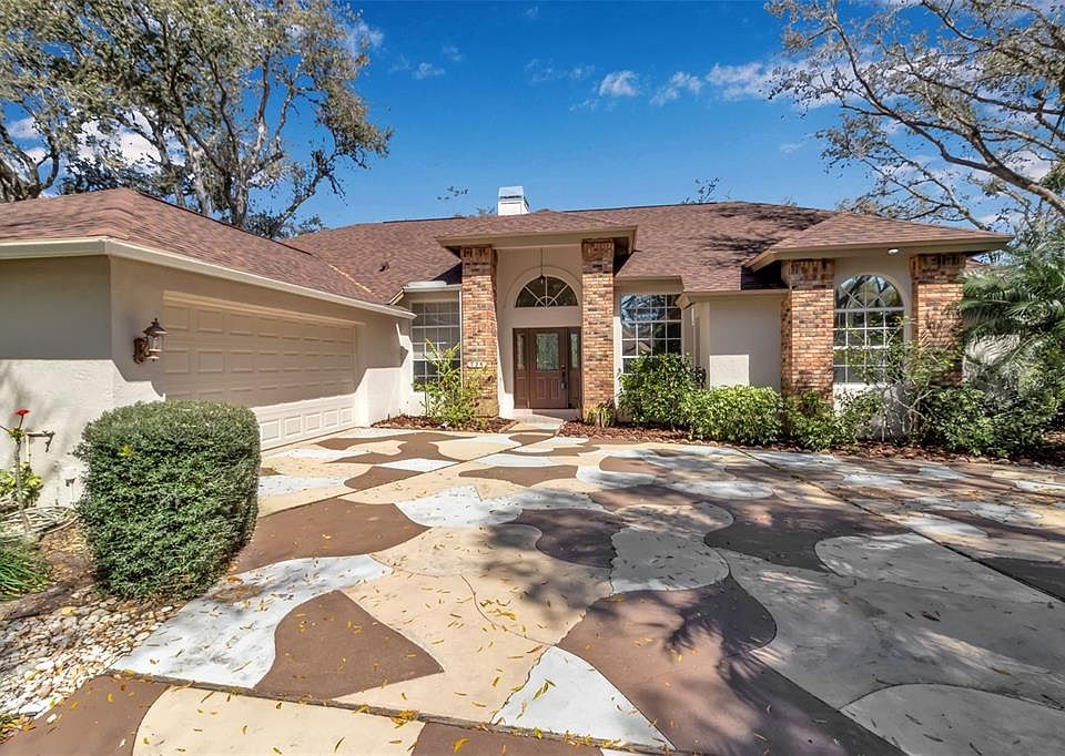 Welcome to your future home where natural Florida Flora and Fauna captivate your senses. Located on the banks of Mill Creek in Hidden Oaks, this Rutenburg ranch style home is on a .8 acre lot with a floating dock and kayak launch directly on Mill Creek. From the moment you enter the foyer, you will sense the serenity that this home will afford you. Featuring a 3BR/2BA split floor plan plus an office/den/bonus room. A spacious owner suite offers his & her closets, updated en suite bath with dual vanities and walk-in shower. The open living room has a wood burning fireplace and a full wall of glass sliders that highlight the luscious back yard. The kitchen and dinette area also allows you to take full advantage of the captivating yard and river views. A free standing screen room surrounded by nature, places you where you can unwind, overlooking the conservation area and Mill Creek. The rustic ramp and floating dock conveniently lead you to the peaceful riverbank. There is a kayak storage rack there for quick use and storage. Connected to the . A private community boat ramp just step away. You deserve to relax and breathe in the fresh country air in this beautiful retreat.