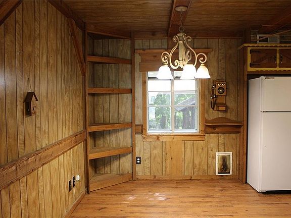 Rustic charm tucked away in an oasis of natural plants, flowers and trees. Inside is rough cedar trim in kitchen and dining area with laminate flooring. Beautiful original wood floors throughout. 3 bedrooms, one was used for a study with built-in shelves. One car garage with a covered carport. Stone pathway from cottage door of carport leading to the backyard oasis. Beautiful, peaceful setting with nature all around. Outdoor kitchen with 2 types of grills and a beverage refrigerator. Storage shed in the back for your mower and lawn equipment, plus a garden closet at the back of the house.